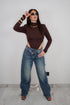 - Abbinato a un crop top aderente e stivaletti neri per un outfit street con carattere.