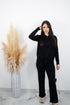 Questo set coordinato Lea nero di Ma Chère è perfetto per un look casual e confortevole per tutti i giorni. Realizzato in caldo cotone, la tuta è composta da una felpa e un pantalone leggermente a zampa, adatto alle taglie fino alla L. Grazie alla vestibilità comoda ed elastica, sarà il compagno ideale per il tuo guardaroba.