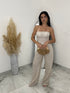 Il set coordinato "Melissa" è disponibile in due colorazioni, nero e beige, e in taglia unica fino ad una L. Composto da un pantalone largo e un top aderente con molla, offre una vestibilità comoda e frasca. Ideale per aperitivi e serate, unisce stile e comfort per farti sentire a tuo agio in ogni momento.